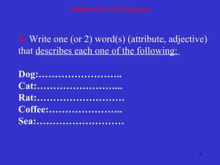 This Is An Honest Questionnaire Which Will Tell You A Lot About Your True Self Give An Answer For Each Item The First Thing That Comes To Mind Is Usually Ppt